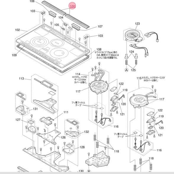 三菱 MITSUBISHI IHクッキングヒーター 吸・排気カバー M26701349FWS