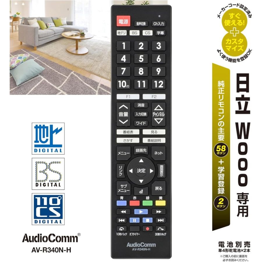 【在庫あり】オーム電機 OHM AudioComm テレビリモコン 日立Wooo専用 03-5913 AV-R340N-H◇