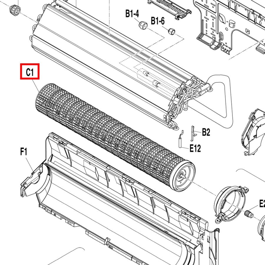 ダイキン製ルームエアコンのクロスフローファン(ラインフローファン)です。室内機の本体品番を記載しております。